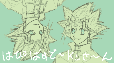 あの記憶で書いたのでツノとか色々間違ってると思うんですけどスルーして下さい(笑) そしてツンツン頭の書きにくいこと!一歩間違えばスーパーサイヤ人。どっちを正位置にしようか悩んだけど、王様が微妙にバランス悪くなったので遊戯正位置(笑) ブラックマジシャンと元の人もかっこいいよね。